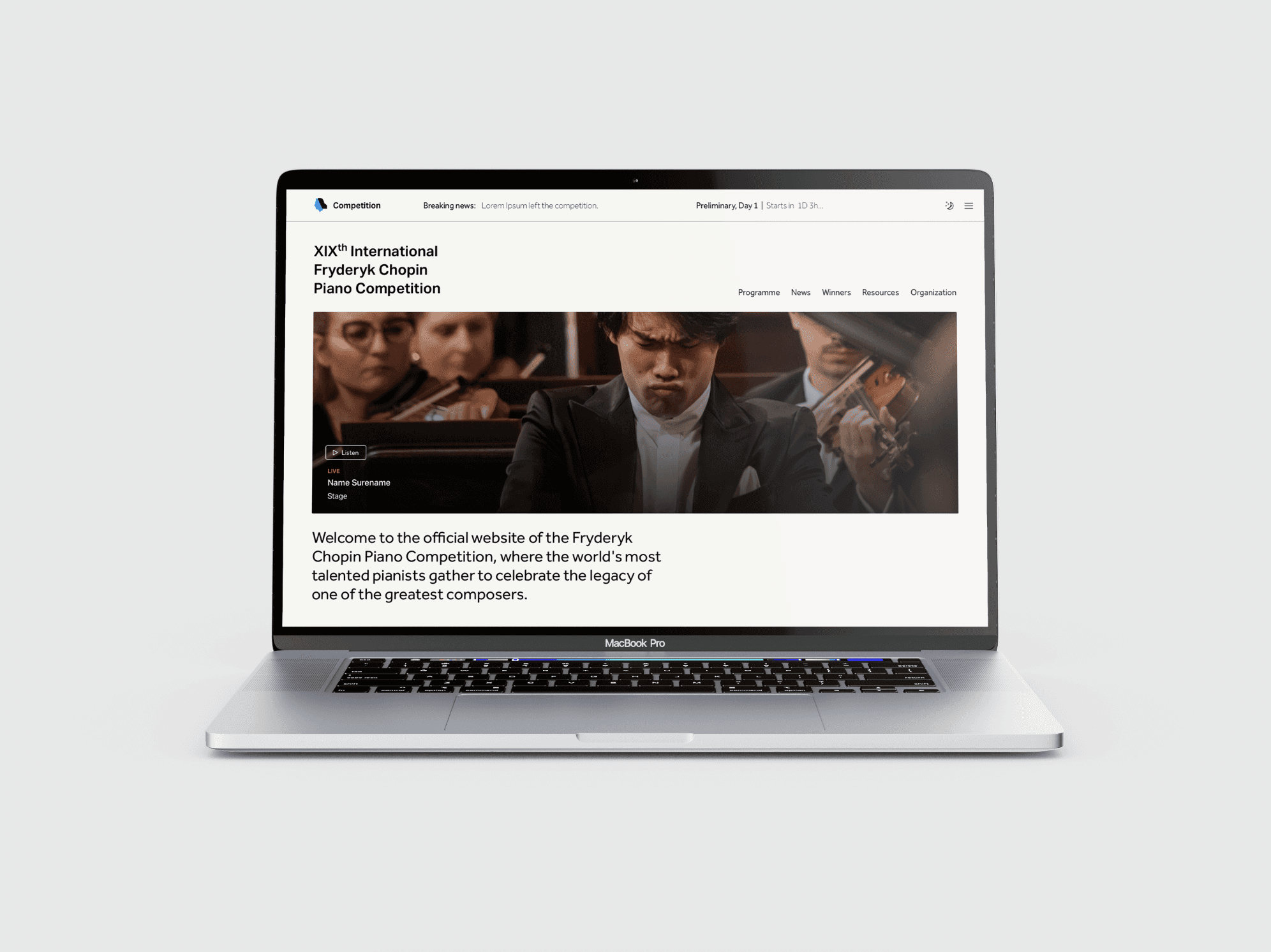 In designing and developing the new Chopin Competition website, we aimed to create a user-friendly experience that reflects a more basic, newspaper-like aesthetic while still providing rich multimedia content. Utilizing Zod validation for robust form handling, we drew inspiration from the previous competition website but focused on simplifying the layout and enhancing usability. A key feature of the new site is the multimedia viewer, which integrates an audio and video player, allowing visitors to engage with content seamlessly. Additionally, we dedicated significant effort to ensure that the existing API functioned effectively within our new solution, thereby maintaining continuity and reliability for users accessing competition information and resources.